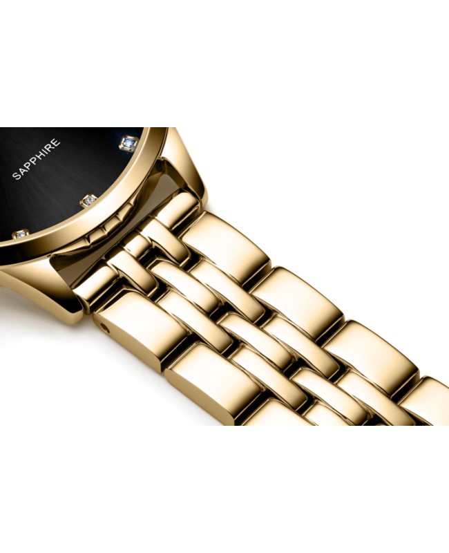 Model ten wyposażony jest w szafirowe szkło, odporne na zarysowania, oraz datownik na godzinie 3, co zwiększa jego funkcjonalność. Precyzyjny szwajcarski mechanizm kwarcowy zapewnia niezawodność i długowieczność.
