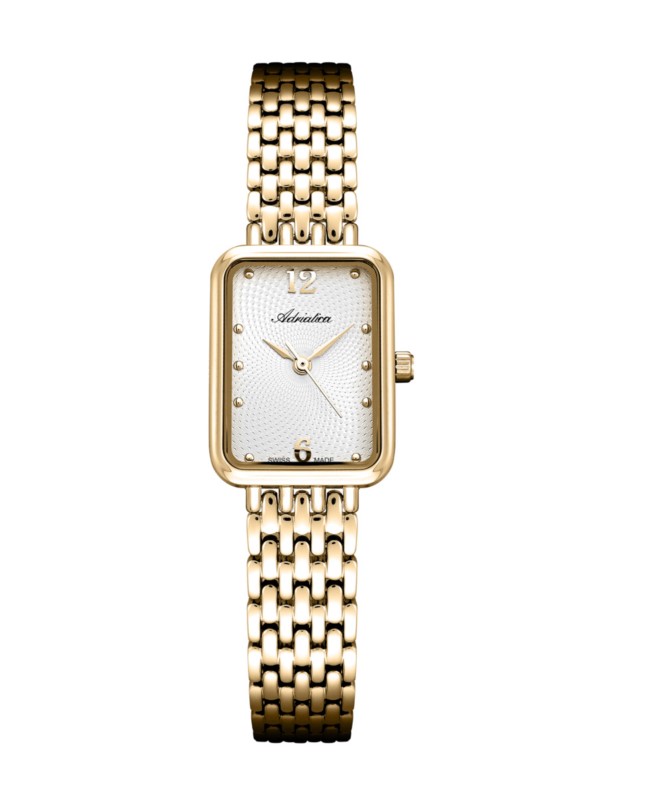 Damski zegarek Adriatica to elegancki i ponadczasowy dodatek dla kobiet ceniących klasyczny styl oraz szwajcarską precyzję. Wyposażony w kwarcowy mechanizm Ronda 783 Swiss Made, zapewnia niezawodne i dokładne odmierzanie czasu. Koperta oraz bransoleta ze stali szlachetnej z drobnych ogniw gwarantują komfort noszenia i elegancki wygląd. Szkło mineralne chroni tarczę przed zarysowaniami, a wodoodporność 3 ATM zabezpiecza przed drobnymi zachlapaniami. Subtelna tarcza z liniowymi indeksami oraz  cyframi na godzinach 6 i 12 podkreśla klasyczny charakter zegarka, który doskonale sprawdzi się zarówno na co dzień, jak i na wyjątkowe okazje.