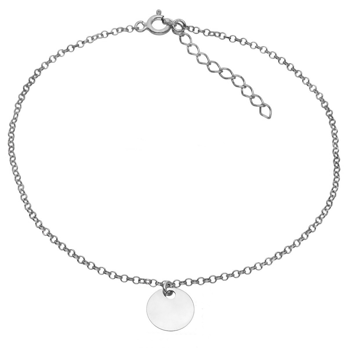Delikatna bransoletka wykonana ze srebra rodowanego próby 925. Ozdobiona gładkim, okrągłym elementem w formie blaszki, który nadaje jej subtelny i elegancki charakter. Prosty design sprawia, że bransoletka pasuje do każdej stylizacji, a gładka powierzchnia zawieszki doskonale nadaje się pod grawer personalizowany.