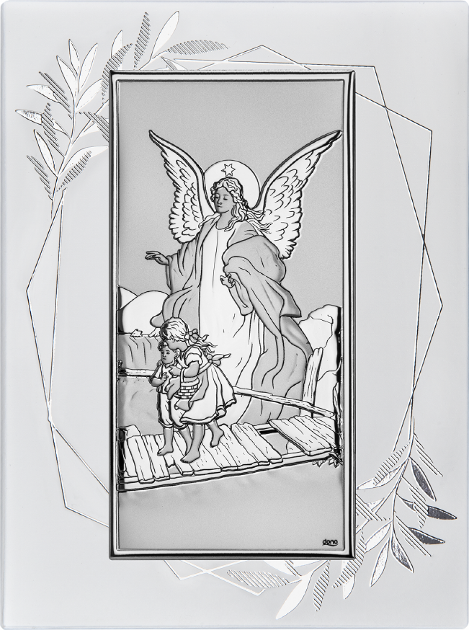 Obrazek srebrny Anioł Stróż strzegący dzieci w drodze.