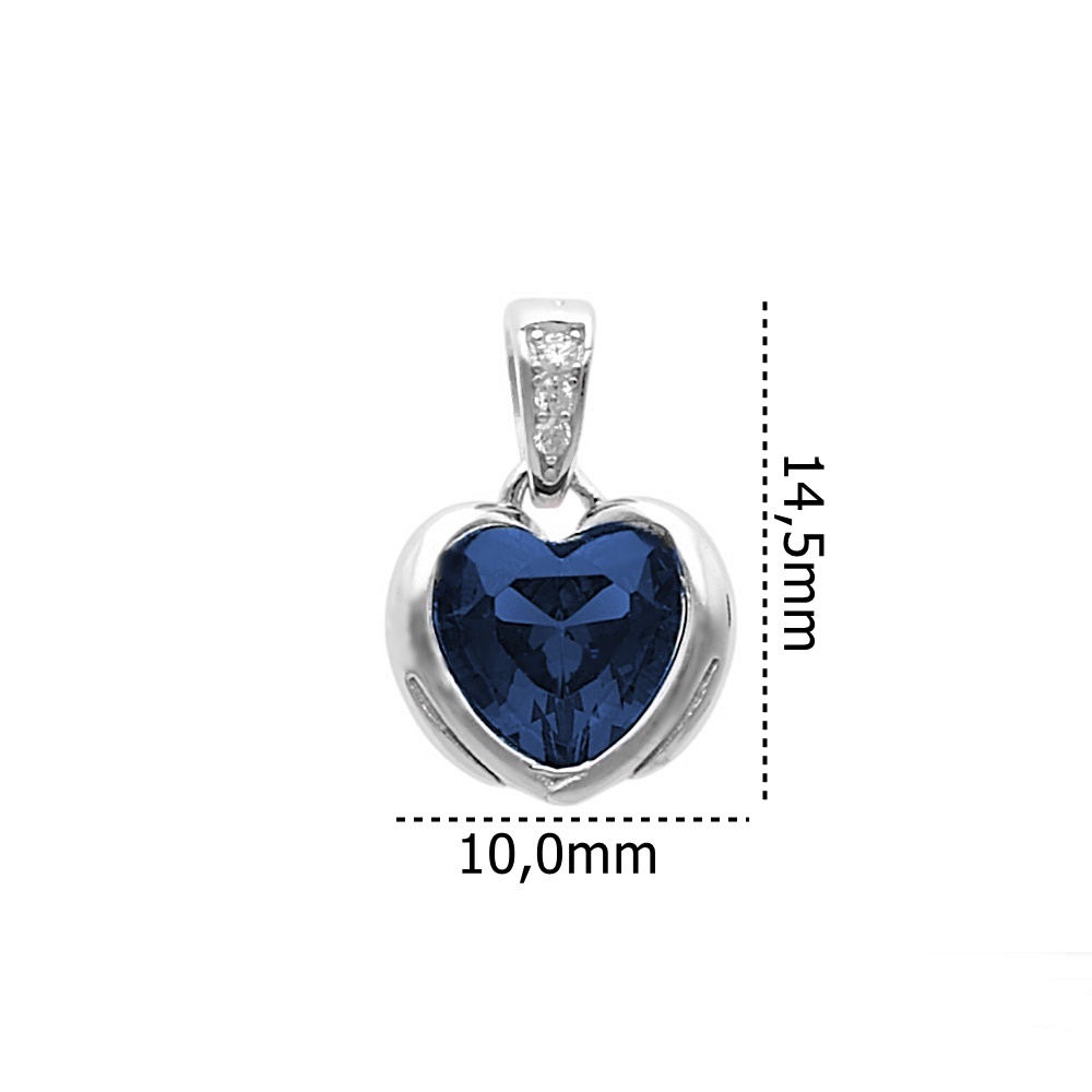 Wisior srebrny rodowany w kształcie serca.Środek wisiorka zdobi duża cyrkonia w niebieskim odcieniu.Nad serduszkiem znajduje się mała, srebrna część z jedną mniejszą, przezroczystą cyrkonią, która dodaje całości elegancji.