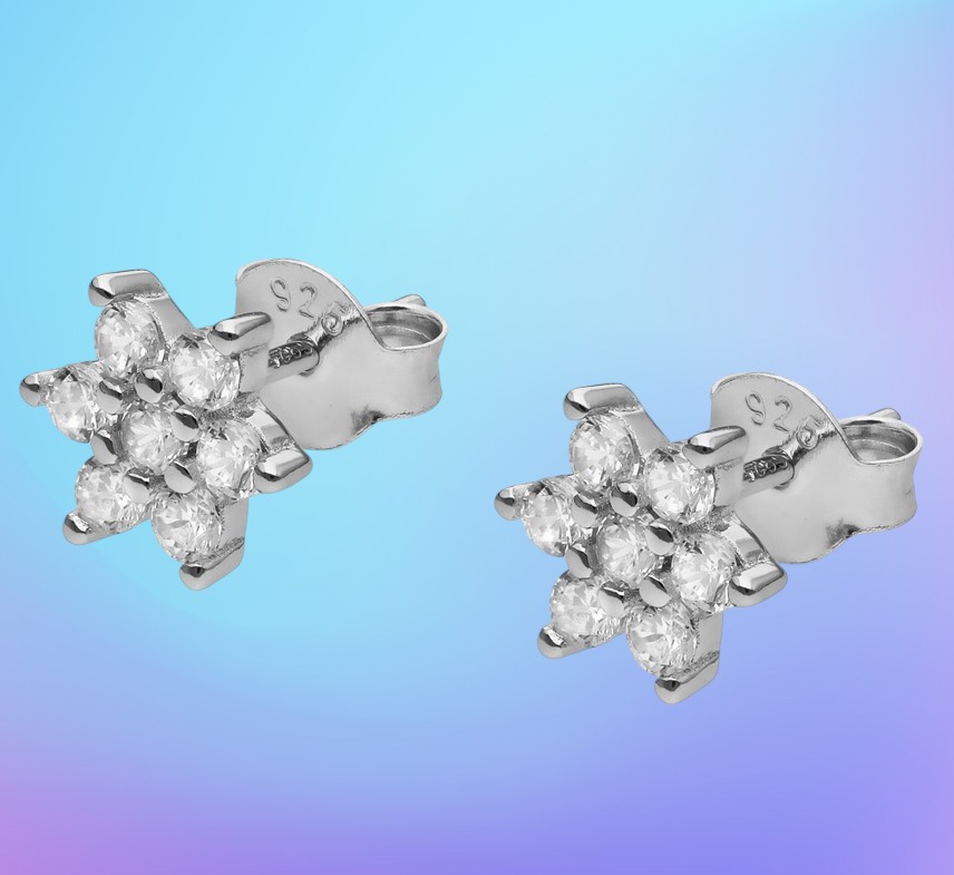Delikatne i eleganckie kolczyki na sztyfcie w kształcie kwiatków, wykonane z wysokiej jakości srebra rodowanego próby 925. Każdy kwiatuszek został misternie ozdobiony wyłącznie lśniącymi białymi cyrkoniami, które pięknie odbijają światło i nadają całości subtelnego blasku. Klasyczny, a zarazem romantyczny design sprawia, że kolczyki doskonale sprawdzą się zarówno na co dzień, jak i jako biżuteria na wyjątkowe okazje.
