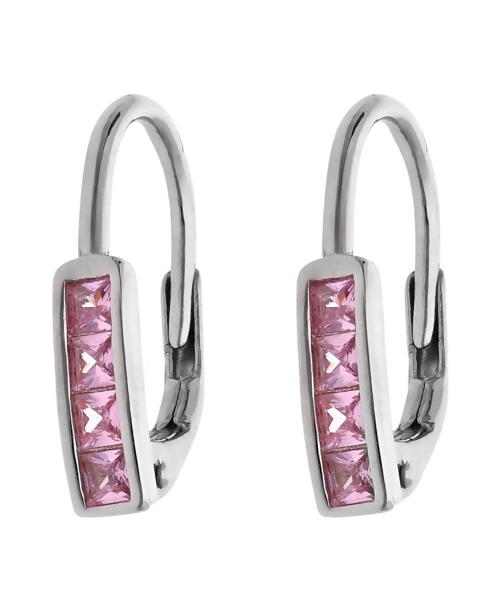 Wyjątkowe kolczyki wykonane ze srebra rodowanego próby 925, ozdobione rzędem lśniących różowych cyrkonii o szlifie kwadratowym. Ich delikatna kolorystyka i klasyczny design sprawiają, że będą idealnym dodatkiem do romantycznych oraz codziennych stylizacji. Zapięcie typu angielskie zapewnia wygodę i bezpieczeństwo noszenia.
