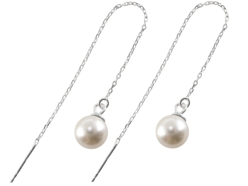 Srebrne kolczyki przeciągane z perełką. Prostota kolczyków sugeruje wszechstronność, dzięki czemu kolczyki te nadają się zarówno na codzienne, jak i oficjalne okazje. Wykonane z najwyższej jakości srebra rodowanego próby 925.
