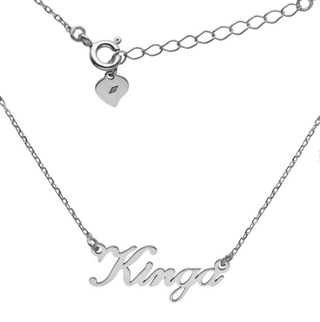 Naszyjnik z imieniem "Kinga" to elegancka i subtelna biżuteria wykonana z wysokiej jakości srebra próby Ag 925.