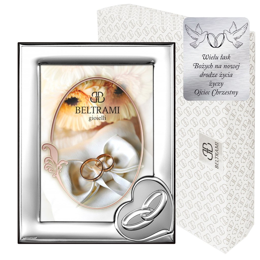Ramka srebrna na zdjęcie z obrączkami. Idealna na ślub lub rocznicę.