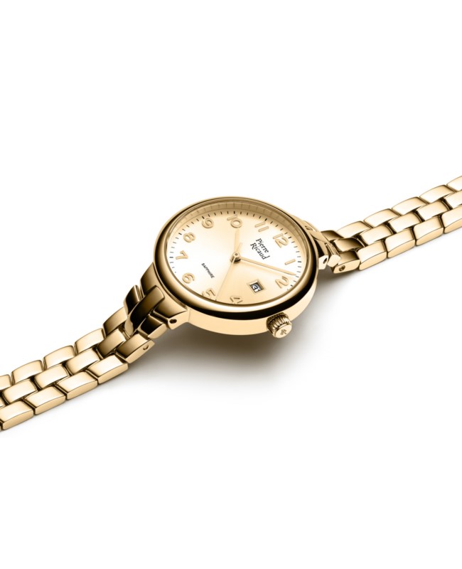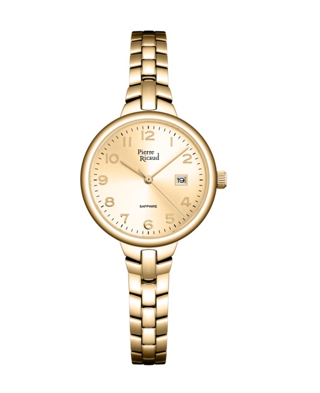 Pierre Ricaud P23007.1121Q to elegancki zegarek damski o klasycznym wyglądzie, który łączy szyk z funkcjonalnością. Złota koperta i bransoleta wykonane ze stali szlachetnej tworzą spójną, luksusową całość. Zegarek wyróżnia się minimalistyczną złotą tarczą z arabskimi indeksami i datownikiem. Szkło szafirowe zapewnia wysoką odporność na zarysowania, a precyzyjny mechanizm kwarcowy gwarantuje niezawodne działanie. To idealna propozycja na co dzień, do pracy i na specjalne okazje.