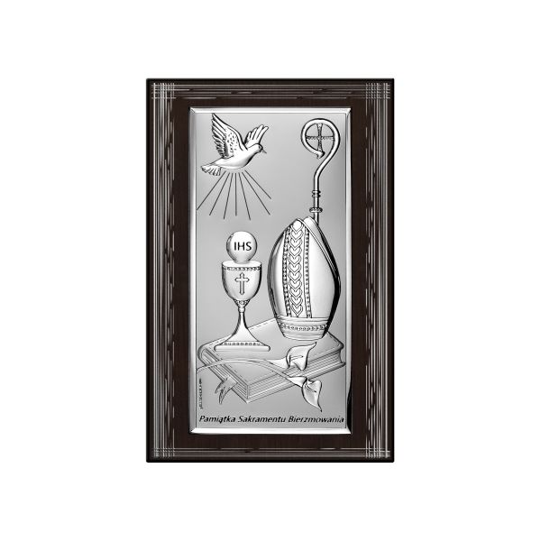 Obrazek religijny Pamiątka Sakramentu Bierzmowania  to elegancka i ponadczasowa propozycja na wyjątkowy prezent z okazji przyjęcia sakramentu bierzmowania. Produkt ten wyróżnia się starannym wykonaniem oraz klasycznym, estetycznym designem.