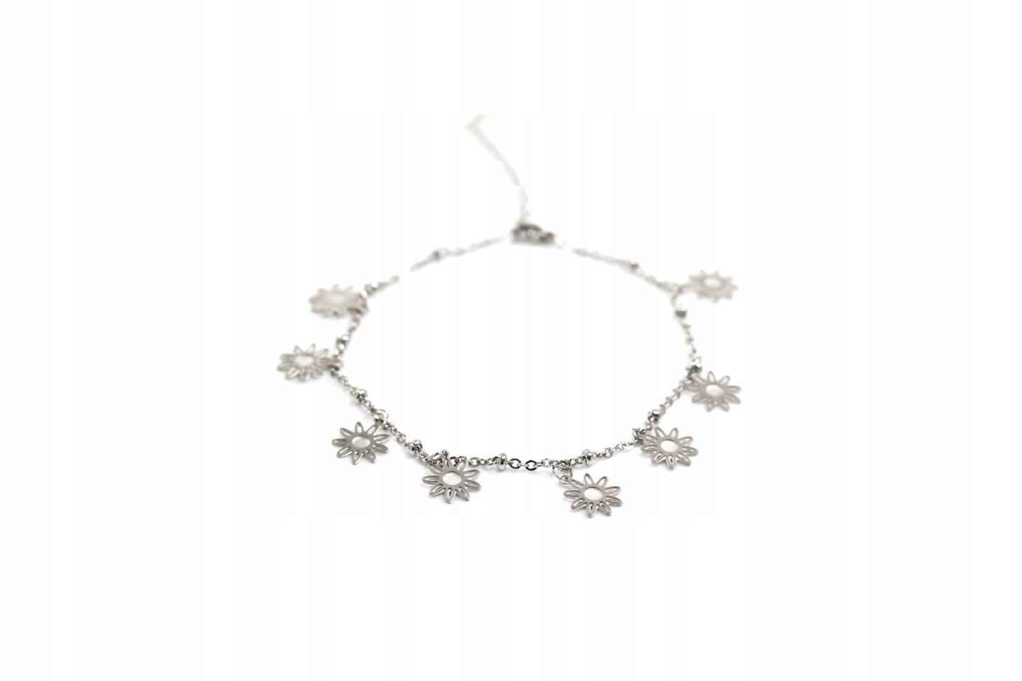 Bransoleta stalowa 316L na kostkę z motywem kwiatów.