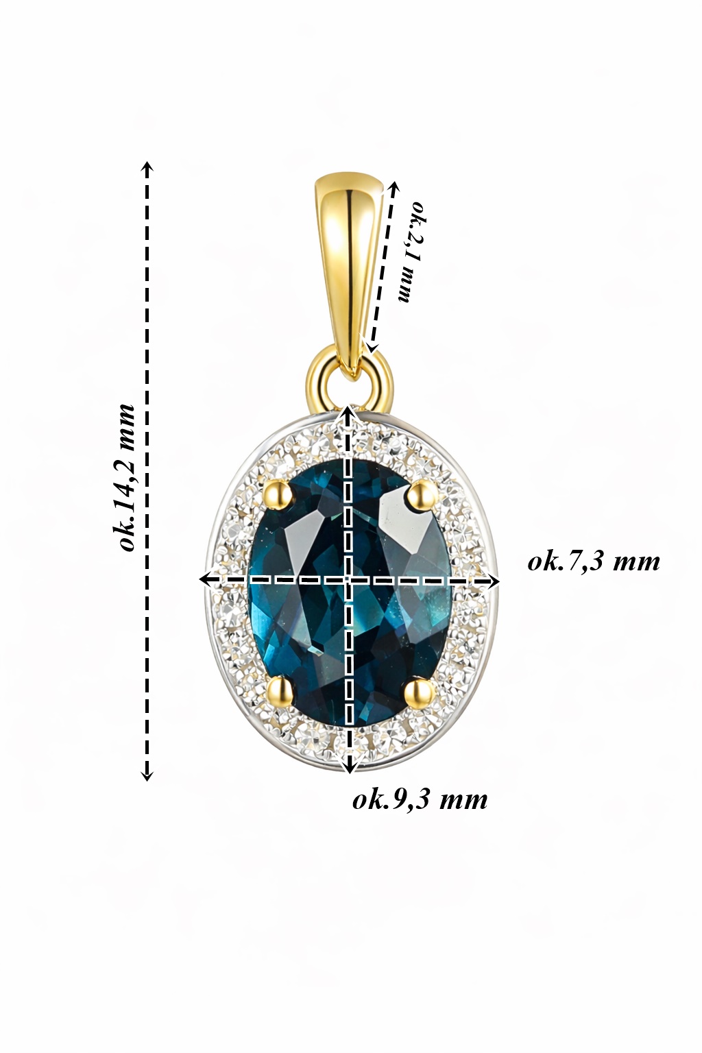 Zawieszka złota Au 585 z topazem London Blue
