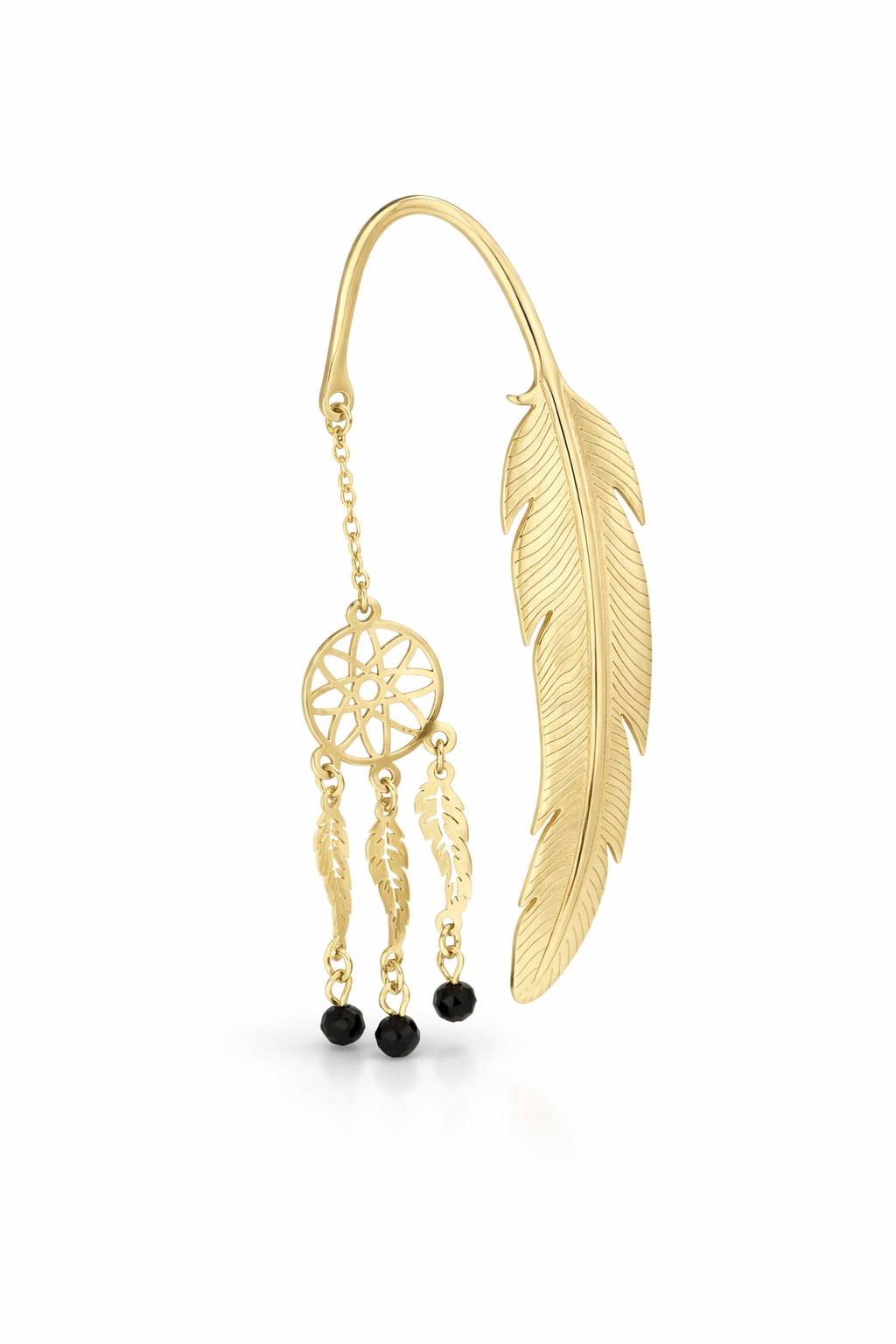 Zakładka do książki Ag 925 złocona z cyrkoniami – elegancki i praktyczny dodatek dla miłośników książek. Wzór inspirowany piórem i łapaczem snów, ozdobiony subtelnymi cyrkoniami, pięknie się prezentuje i przyciąga wzrok.