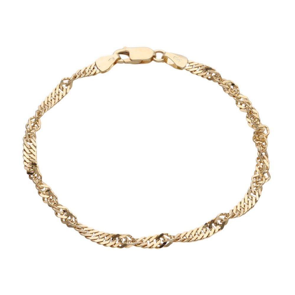Delikatna bransoletka w skręcanym splocie Singapur, wykonana ze złota próby 585. Błyszcząca i elegancka.