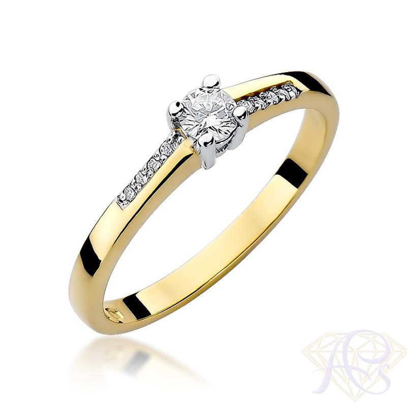 Klasyczny pierścionek wykonany z żółtego złota próby 585 (14 karat) ozdobiony białymi cyrkoniami