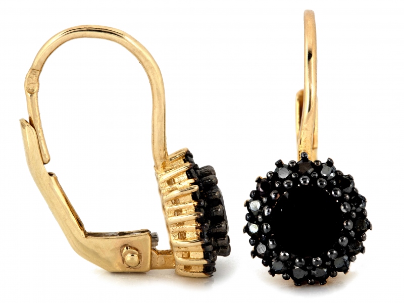 Kolczyki, wykonane z 14-karatowego złota (Au 585), wyróżniają się efektownymi główkami ozdobionymi czarnymi cyrkoniami.